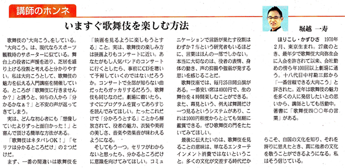 堀越一寿(ほりこし・かずひさ) 『歌舞伎を見て 自国の文化を誇れる自分に』 |